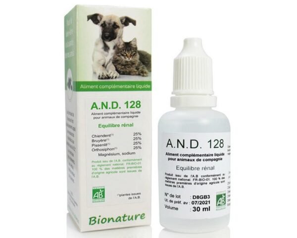 AND 128 est un complément alimentaire conçu pour soutenir la fonction urinaire de votre animal de compagnie.